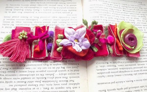 Skończyłam kolejną bransoletkę mankiet. Absolutnie wiosenna, kwieciem obsypana.